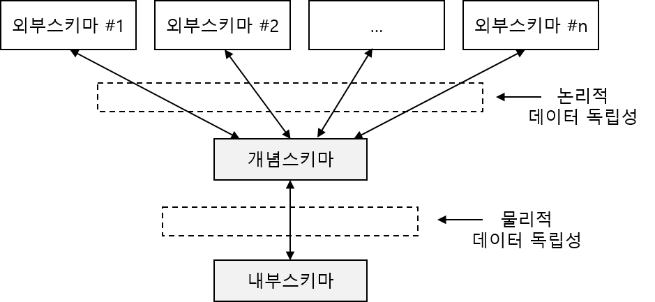 - 개념 스키마 변경 → 외부 스키마에 영향 없도록 지원