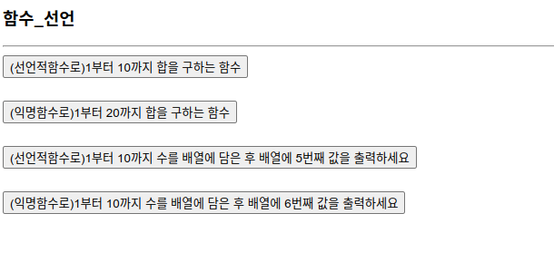 <input type="button" onclick="fn_total01(1, 10)" value="(선언적함수로)1부터 10까지 합을 구하는 함수"/>