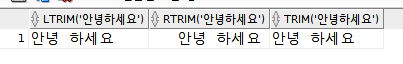 - RTRIM: 오른쪽 공백만 제거