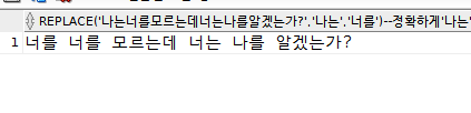 SELECT REPLACE('나는 너를 모르는데 너는 나를 알겠는가?','나는','너를')