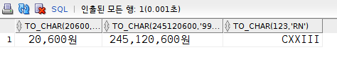 DB에서 금액 데이터를 가지고 올 때 to_char로 형식을 맞춰서 가져올 수도 있다.