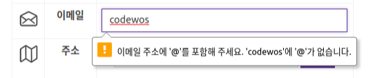 그리고 이메일같은 경우 형식을 맞추지 않았을 시에 형식을 맞추라고 안내가 뜬다.