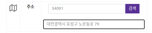위에서 주소를 찾아 클릭하면 위의 사진과 같이 우편번호와 기본 주소가 자동으로 입력된다.