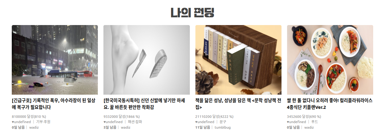 1) 나의 펀딩 화면