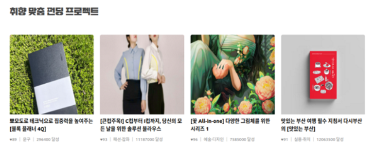 2. 프로젝트 내용 : 이전에 Spring 과제에서 만들었던 펀딩 사이트의 데이터를 활용하여 추천 시스템을 만들었다. 사용자가 찜한 펀딩 데이터를 기반으로 userbase와 contentbase로 유저가 좋아할 만한 펀딩을 추천하도록 했다. 여기서 만든 추천 리스트를 이후에 flask를 사용해서 홈 화면으로 보내주었다.