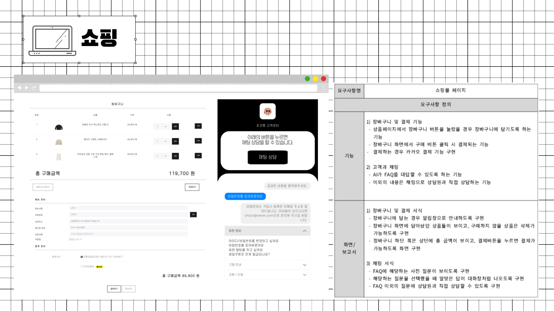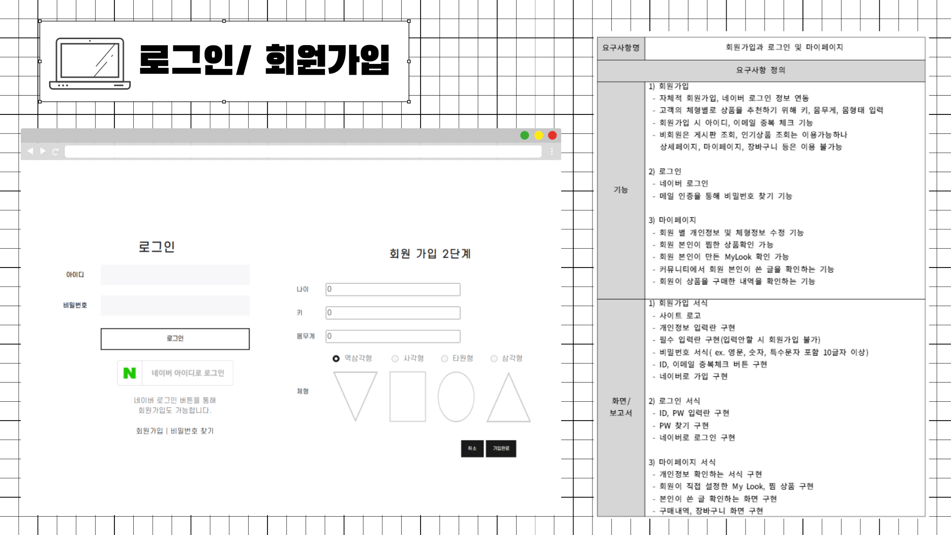 4) 각 화면 및 요구사항