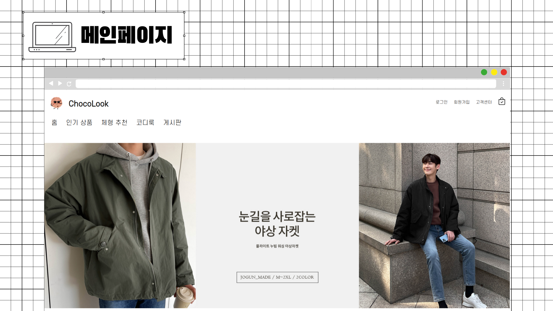 - 주제 : 남자들을 위한 남성 의류 쇼핑몰 & 커뮤니티로 "초보 코디러를 위한 룩북"의 줄임말이다.
