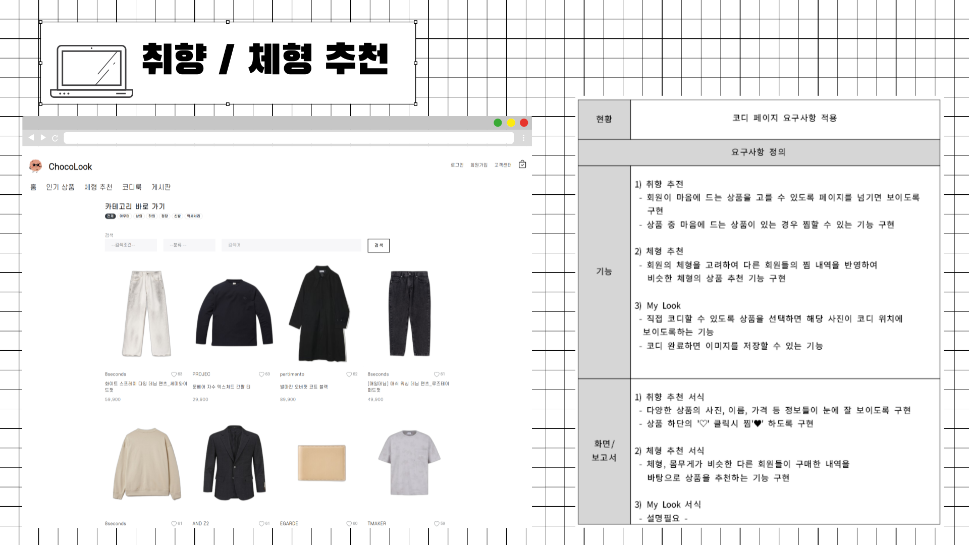 - 선정 이유 : 취향 추천이나 체형 추천, 코디북 만들기를 지원하는 여성 의류 사이트는 많이 있지만 남성 의류 사이트는 이러한 부분이 대부분 미흡하여 남성의 코디를 도와주는 사이트를 제작하게 되었다.