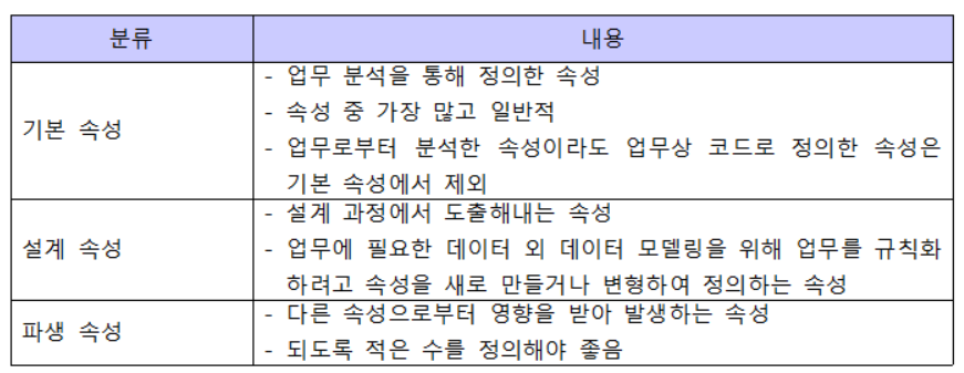 - 일반 속성 : 개체에 포함되어 있으나 기본키, 외래키가 아닌 속성